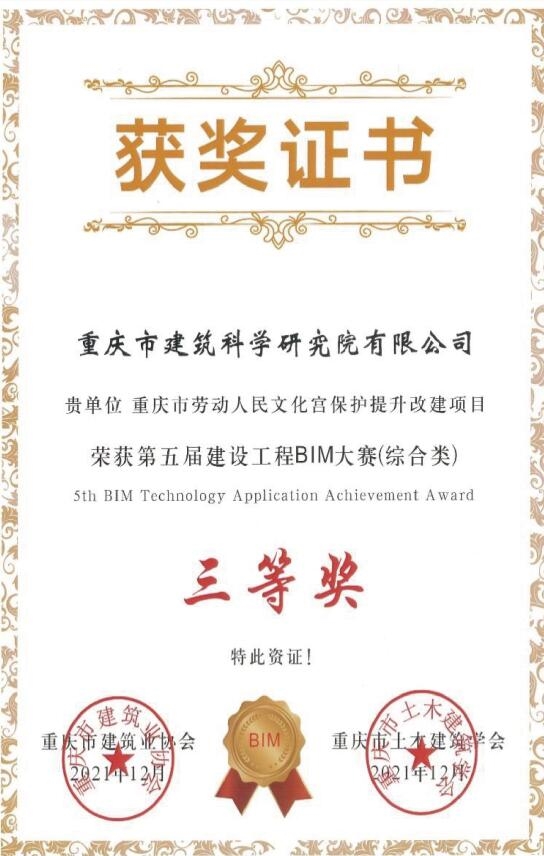 重慶市第五屆建設工程BIM大賽三等獎