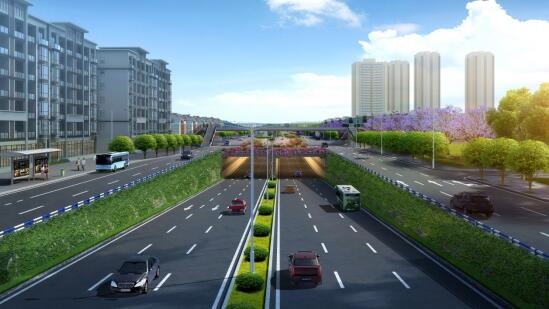 重慶市重鋼片區百花村隧道道路工程位于重慶市重鋼片區,是重慶市重難點建設項目,設計道路左線全長1104.628米,其中隧道長660.525米;右線全長898.092米,其中隧道長552米。設計終點段標準路幅寬度為36.5米,隧道標準路幅寬度為9米,道路等級為城市次干路,雙向四車道,設計車速為40km/h,含隧道1座(按左、右線實施)。項目通車后,實現了大渡口重鋼片區東西貫通,進一步加強了九宮廟商圈與濱江片區的聯系,激活了豐富的濱江岸線資源,對加快重鋼片區的產業轉型步伐、提升片區土地利用價值、促進大渡口區社會經濟發展具有重要意義。