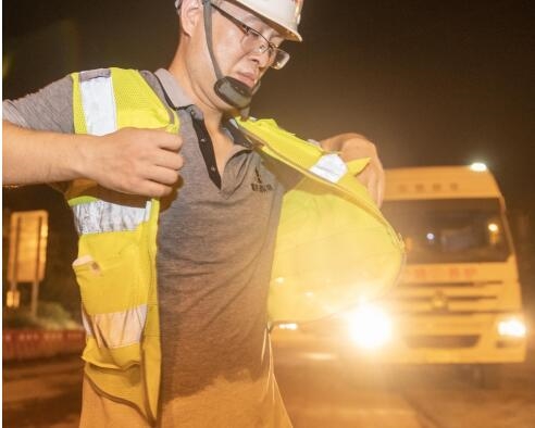 近期重慶主城天氣連晴高溫,即使在凌晨仍炙熱難耐。在內環(huán)快速路整治二期項目現(xiàn)場,瀝青路面上白煙升騰、熱浪襲人,鋪筑中的路面達到了147.2 ℃,惡劣環(huán)境中,仍有一群人在執(zhí)著堅守,他們是市建科院公司內環(huán)快速路整治二期項目監(jiān)理團隊。在拌合站把控瀝青站出場溫度、配比、油石比等重要檢查指標,在攤鋪現(xiàn)場檢查瀝青到場、攤鋪、碾壓的溫度,在攤鋪過程中檢查瀝青的松浦厚度、控制壓路機碾壓的速度和碾壓的遍數(shù)等,哪怕是凌晨,監(jiān)理人員仍需要在工作中保持嚴謹和專注,每一步都是為確保各項建設工藝指標控制在規(guī)范范圍內,都將作為后續(xù)工程的堅實基礎。
