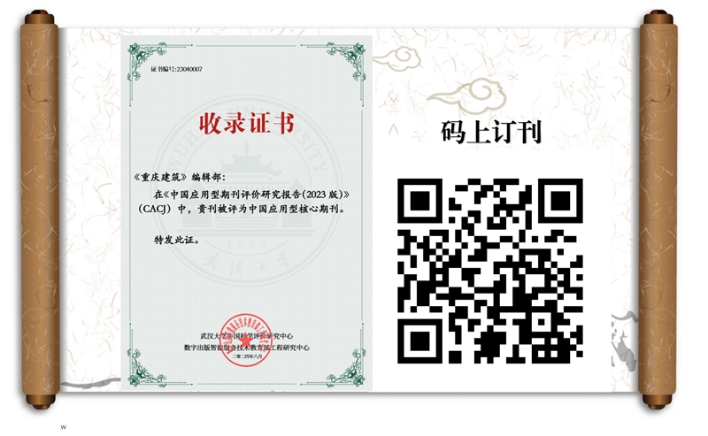 《重慶建筑》是重慶市住房和城鄉(xiāng)建設(shè)委員會(huì)主管,重慶市建筑科學(xué)研究院有限公司主辦、面向海內(nèi)外公開發(fā)行的優(yōu)秀山地建筑科技期刊。自2002年創(chuàng)刊以來,《重慶建筑》一直堅(jiān)持高標(biāo)準(zhǔn)審稿編稿,確保所刊文章具備較高的科研價(jià)值、實(shí)用價(jià)值和可讀性,對(duì)讀者的研究工作和工程實(shí)踐提供了切實(shí)的幫助和指導(dǎo)。多年來,我刊立足重慶山地建筑特色,服務(wù)山地優(yōu)秀建設(shè)項(xiàng)目和前沿建筑科技成果的宣傳推廣,為重慶市各區(qū)縣面向全國(guó)推廣地方建筑文化和地方建設(shè)成就,做出了重要貢獻(xiàn)。雜志現(xiàn)已被中國(guó)知網(wǎng)等多個(gè)權(quán)威數(shù)據(jù)庫(kù)全文收錄,并被評(píng)為CACJ中國(guó)應(yīng)用型核心期刊。