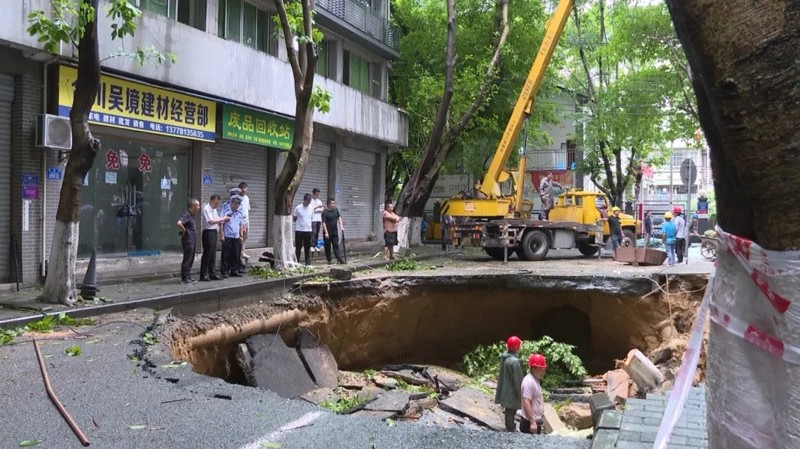 某區(qū)某街道路段因暴雨影響突發(fā)塌方,停靠在路邊的兩輛小車和一輛摩托車墜入坑中,事故發(fā)生后屬地公安、消防、應(yīng)急等多部門迅速響應(yīng)趕赴現(xiàn)場開展緊急處置工作,市建科院立即派出專業(yè)檢測團隊,前往現(xiàn)場開展道路兩側(cè)建筑物的變形檢測、監(jiān)測工作,作出準確技術(shù)評判,為后續(xù)險情處置提供理論依據(jù)。