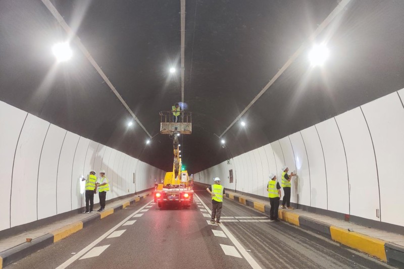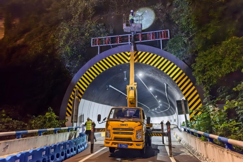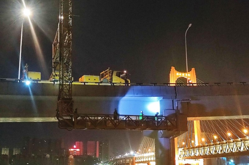 (檢測團(tuán)隊(duì)在夜間對橋隧進(jìn)行檢測工作 )