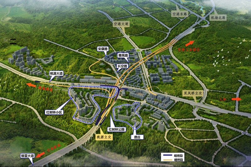 椿萱大道作為快速路五聯絡線東側的重要組成部分,是連接中心城區與外圍組團的關鍵通道。此次檢測路段起于椿萱大道與金山大道形成的蔣家山立交,止于空港東路,全長約9.2km,為城市快速路,含2座立交(桃源立交、空港東路立交),1座大橋(蔣家灣大橋),1條隧道。